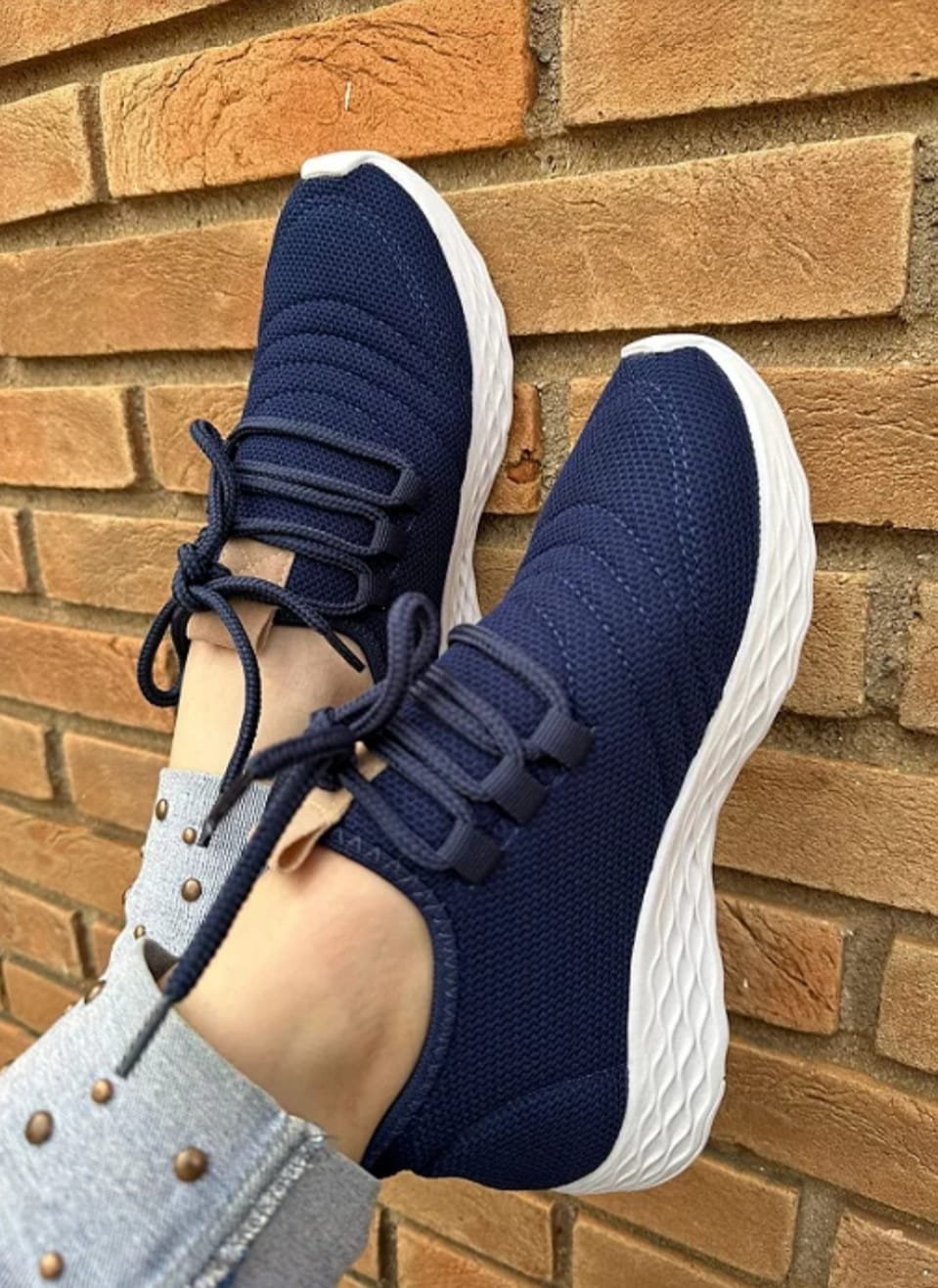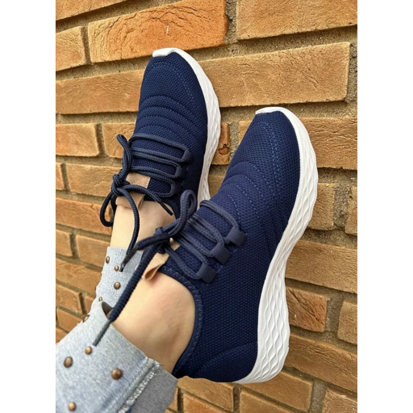 Tênis Run é um calçado leve, estilo meia, solado sintético borracha, altura da sola 2,5cm, palmilha acolchoada, protetor de calcanhar.