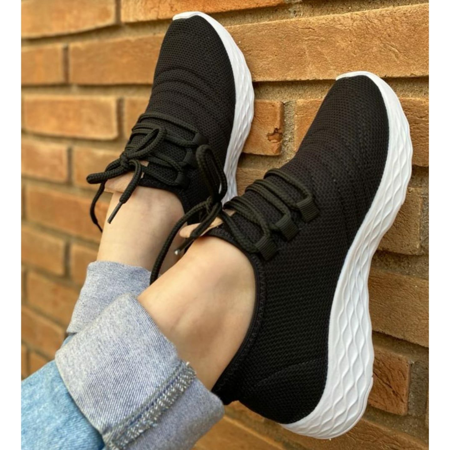 Tênis Run é um calçado leve, estilo meia, solado sintético borracha, altura da sola 2,5cm, palmilha acolchoada, protetor de calcanhar.
