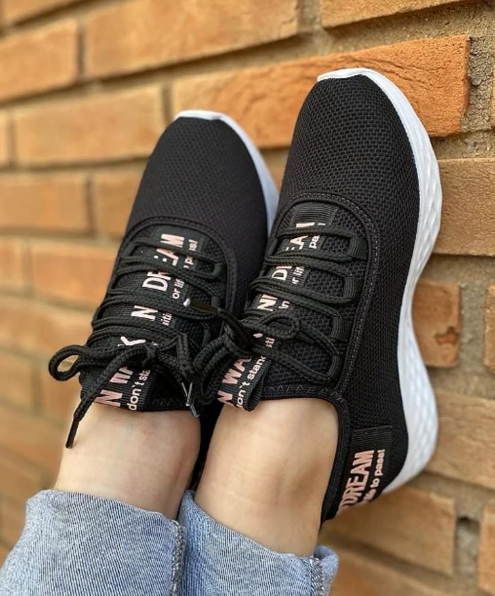 Tênis Run é um calçado leve, estilo meia, solado sintético borracha, altura da sola 2,5cm, palmilha acolchoada, protetor de calcanhar.